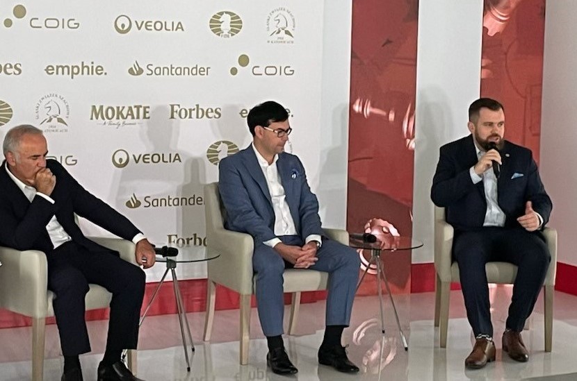 Spotkanie w warszawskich Łazienkach poprzedziła konferencja prasowa z udziałem Garrego Kasparova oraz Adama Mokrysza i Łukasza Turleja, wiceprezydenta Międzynarodowej Federacji Szachowej, poświęcona między innymi rozwojowi szachów jako dyscypliny sportowej w Polsce i na świecie oraz szachom w szkole i odpowiedzi na pytanie, dlaczego obecność szachów w systemie edukacyjnym jest tak istotna.