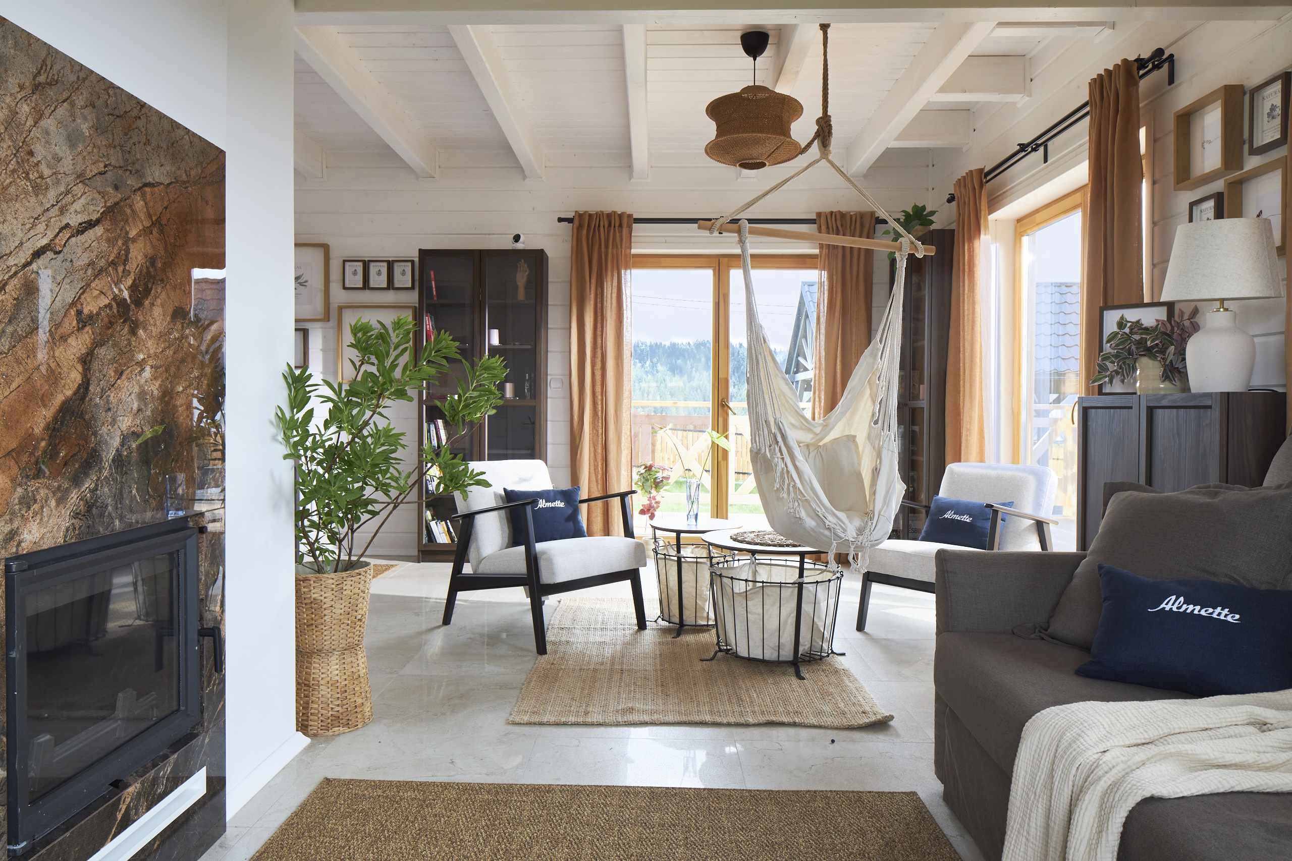 Ukryty w sercu natury, pośród tatrzańskich hal i łąk, wyjątkowy ekoDOM ze strefą ‘Chill & Grill’ to nie bajka – to prawdziwa, główna nagroda w Wielkiej Loterii Almette. Znajduje się w miejscowości Ząb, a z jego z okien rozpościera się oszałamiający widok na Giewont. Domek marzeń, bo niewątpliwie można go tym mianem określić, jest piękny, komfortowo i modnie urządzony oraz gotowy do zamieszkania. Wyposażono go w technologie smart i eko: ogrzewanie i światło sterowane smartfonem, kominek i zapewniające oszczędności panele solarne oraz w sprzęt AGD i RTV, w tym m.in. w lodówkę, pralkę, zmywarkę i telewizor. Nie zapomniano również o drobnych elementach, takich jak lampy, ręczniki czy zastawa stołowa. EkoDOM Almette zaprojektowano z myślą o wygodzie i stylu: ma naturalne, drewniane wykończenia, miękką sofę w najmodniejszym odcieniu Mocha Mousse oraz taras z widokiem na góry. Te warto podziwiać zwłaszcza ze strefy ‘Chill & Grill’, którą tworzy idealny duet: kuchnia pod chmurką i zewnętrzna przestrzeń przeznaczona do relaksu. To bez wątpienia letnie serce tego domku – z wygodnym narożnikiem, girlandami i światłami, które wspólnie tworzą niepowtarzalny, bajkowy klimat.
