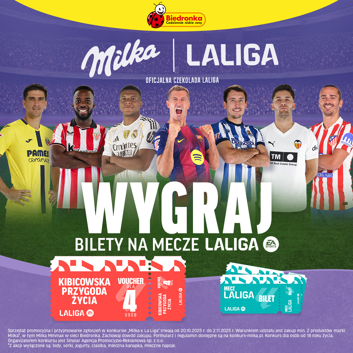 Z okazji współpracy, marka przygotowała dla konsumentów w Polsce konkurs realizowany w sieci sklepów Biedronka. Aby wziąć w nim udział, wystarczy kupić dwie czekolady Milka, w tym jedną z linii Mmmax, zachować dowód zakupu i zarejestrować swój zakup na stronie www.konkurs-milka.pl. Na uczestników czekają wyjątkowe nagrody, które rozpalą piłkarskie emocje. W puli znajduje się Kibicowska Przygoda Życia dla 4 osób, obejmująca 4 bilety na mecz Athletic Club z FC Barcelona w Bilbao, możliwość obejrzenia przedmeczowej rozgrzewki, wycieczkę po stadionie San Mamés oraz 10 000 zł na dodatkowe wydatki. W konkursie przewidziano także 5 nagród, z których każda zawiera dwa bilety na mecze LALIGA oraz 5 000 zł. Co więcej, każdego dnia na uczestników czeka aż 100 nagród w postaci bonów o wartości 100 zł na zakupy w Biedronce. Konkurs potrwa od 20 października do 2 listopada 2025 roku. Szczegóły dotyczące rejestracji i regulaminu dostępne są na stronie internetowej oraz w sklepach Biedronka.Współpraca marki Milka z LALIGA dodatkowo będzie wspierana kampanią digitalową w social mediach, gdzie fani będą mogli zobaczyć inspirujące treści łączące świat futbolu i czekolady.