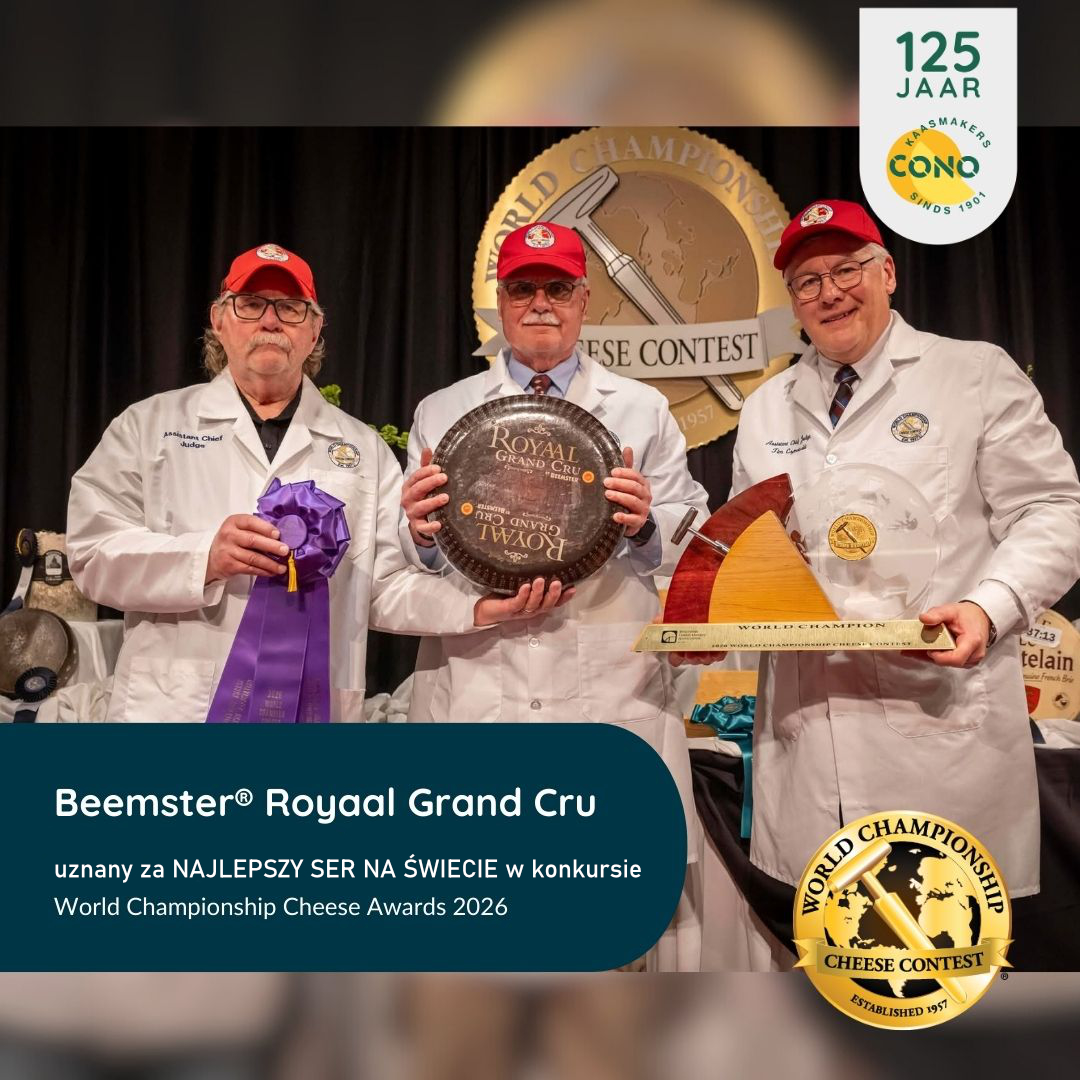 Beemster® Royal Grand Cru zachwycił jury wyjątkowym smakiem, aromatem i konsystencją, uzyskując imponujący wynik 98,68 punktów i pokonując tysiące serów z całego świata. Inne sery z tej linii również zdobyły złote medale potwierdzając ich najwyższą jakość oraz kunszt produkcji. To ogromne wyróżnienie i dowód uznania dla serów Beemster ®.