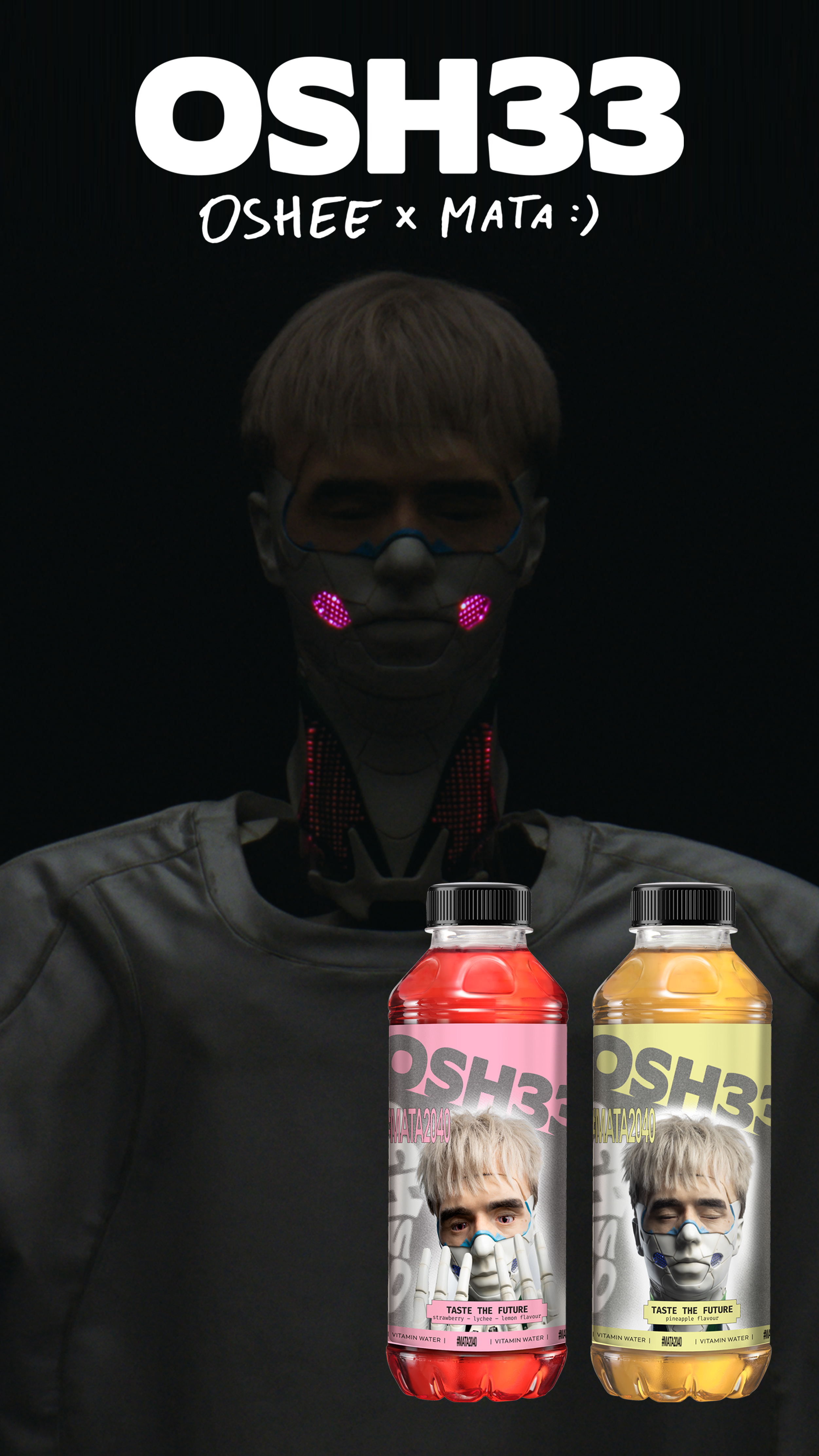 To kolejny etap długofalowego projektu OSHEE x MATA 🙂 czyli OSH33, który jeszcze mocniej łączy świat muzyki, popkultury i napojów funkcjonalnych. Limitowaną edycję wyróżnia nie tylko unikalny design opakowań, ale także wykorzystanie wizerunku „Maty 2.0” – humanoidalnego robota stworzonego na podobieństwo rapera, który od miesięcy towarzyszy mu w działaniach artystycznych, a teraz pojawia się również na butelkach OSHEE.