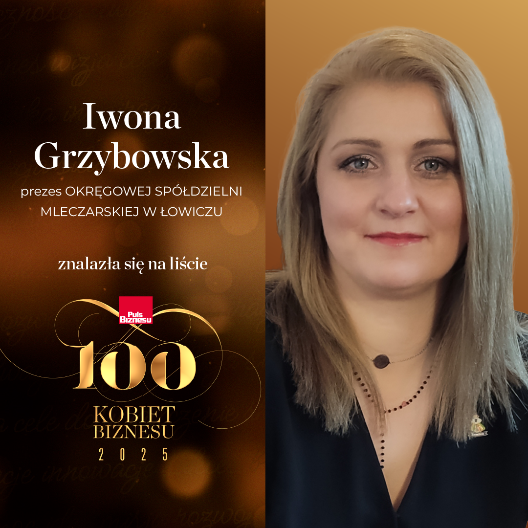 OSM Łowicz poinformowała, że Pani Iwona Grzybowska, Prezes Okręgowej Spółdzielni Mleczarskiej w Łowiczu, znalazła się w prestiżowym zestawieniu Setki Kobiet Biznesu „Pulsu Biznesu”