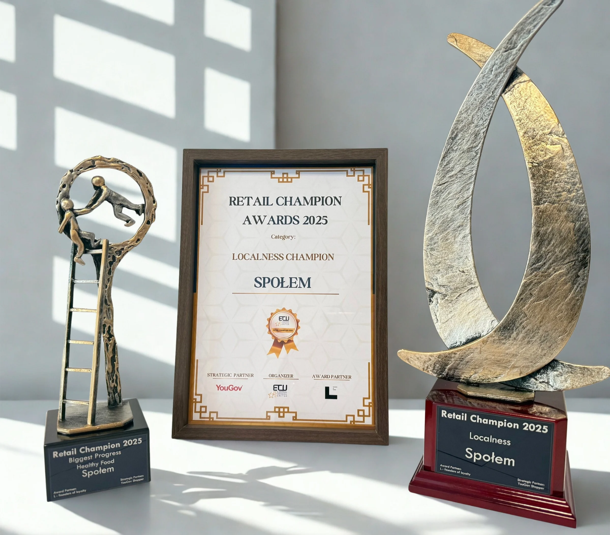 W tym roku po raz trzeci „Społem” zdobyło nagrodę w kategorii Localness 2025! Kategoria Localness to najwyższa ocena dla sklepu pod kątem oferty produktów regionalnych oraz wsparcia lokalnych społeczności. To uhonorowanie dla całej sieci, bez rozróżnienia poszczególnych podmiotów, przyznawane przez konsumentów podczas badań przeprowadzonych przez niezależną polską firmę badawczą GFK Polonia.
