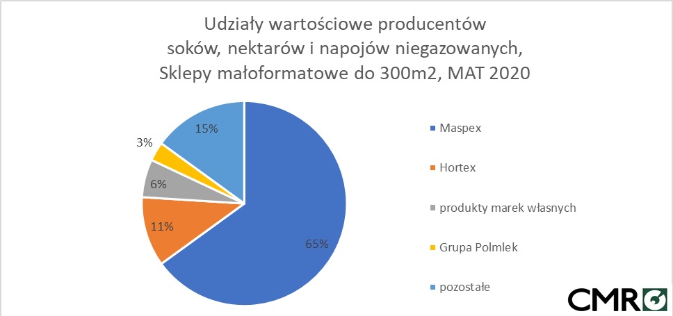 Do najpopularniejszych marek w tych kategoriach w sklepach małoformatowych należą Tymbark, Hortex oraz Kubuś.